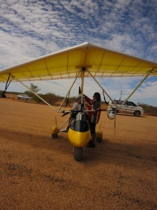 Nous prenions le petit déjeuner au café, sur la place, et le barman qui faisait les jus de fruits nous a donné une idée. Pourquoi ne pas compléter notre expérience en prenant un peu de hauteur ? Un jeune pilote nommé Gavin Penfold, que nous avions vu au journal télévisé le matin même alors qu’il battait un nouveau record, parcourant l’Australie d’une côte à l’autre sur son Microlight, habitait justement là, à Ningaloo, et proposait des tours en avion aux touristes. Nous étions censés partir le jour même, aurions-nous le temps ? Il fallait y aller sans perdre une minute.