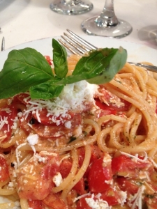 Alors, pourquoi ne pas opter pour un ciel d’azur sur la Ville Eternelle ? Une assiette de pâtes aux tomates fraîches et à l’ail, suivie d’un agneau grillé, moelleux à l’intérieur, croustillant à l’extérieur, le tout relevé d’une touche de basilic ?