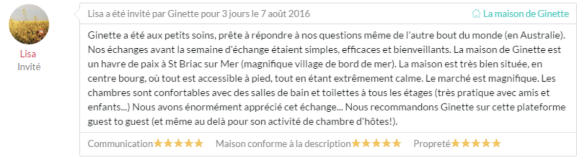 Isabelle, membre de GuesttoGuest