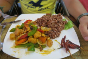 En ce qui me concerne, dans le sud de l’Asie, mes papilles ont été mises à rude épreuve. Ce qui a été très compliqué pour moi, c’est la cuisine épicée ! Je demandais à chaque fois « No spicy », et bien sans doute pour eux, ça ne l’était pas, mais pour moi « française ayant du mal à manger autre chose que du poivre », c’était immangeable ! Et en Asie, il n’y a pas de pain pour arrêter le feu, donc j’ai avalé un nombre incalculable de verres d’eau !!