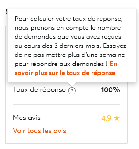 Concernant le taux de réponse, vous nous avez partagé vos doutes sur la manière dont il est calculé, donc nous avons ajouté cette information dans votre profil, pour être totalement transparent sur le sujet.