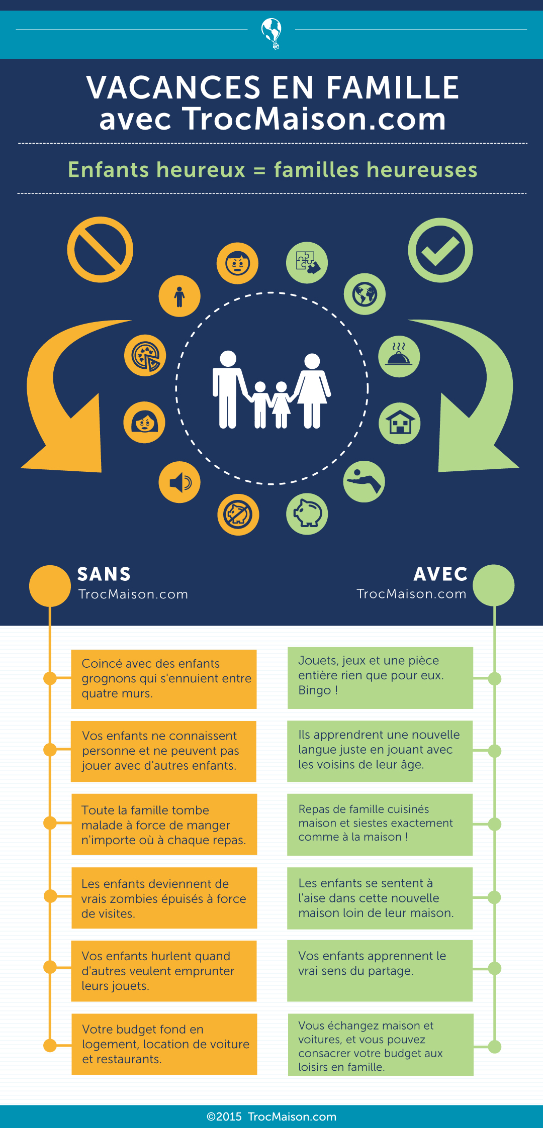Découvrez dans cette infographie quelques-uns des avantages du troc de maisons pour vos vacances en famille.