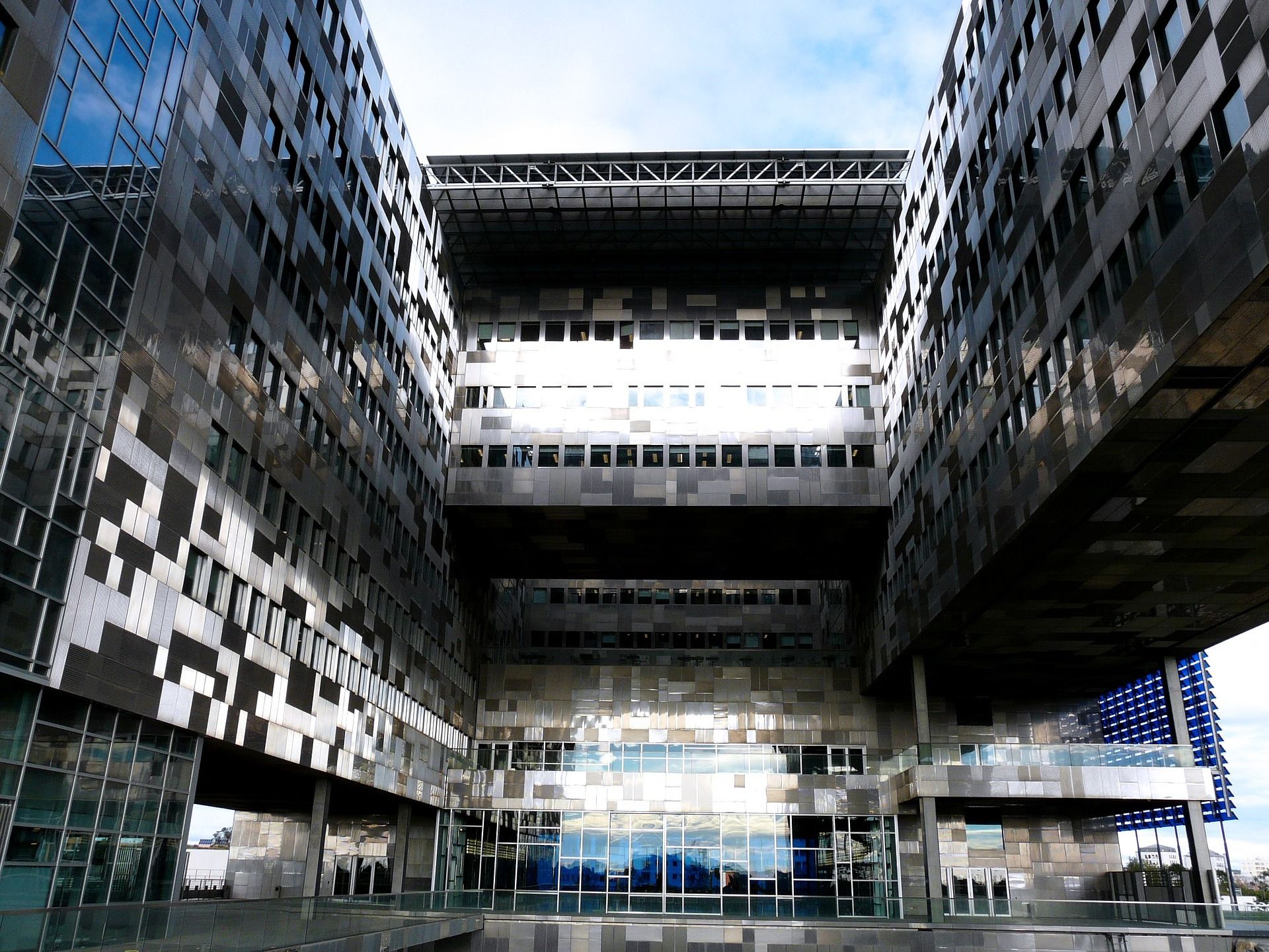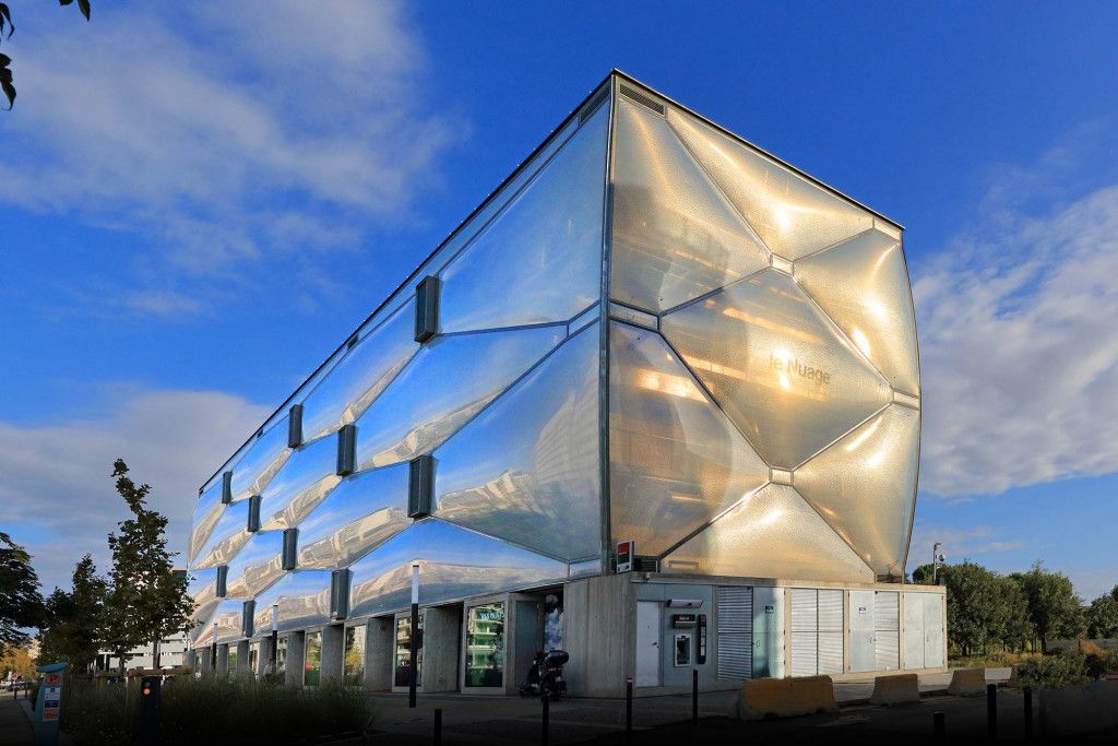 Le nouvel hôtel de ville réalisé par Jean Nouvel et François Fontès est un grand cube de verre et d’acier bleu qui change de tonalité au fil de la journée installé dans un parc public de 4 ha. Les pieds dans l’eau, il se dresse en symbole d’une ville portuaire dans le nouveau quartier de Port Marianne.