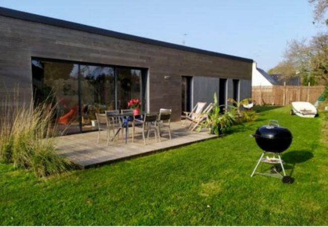 La jolie maison en bois de Delphine est située à 400 m seulement de la plage. Tout y est idéal pour y passer d'excellentes vacances en famille : vélos, trampoline, jeux de société, barbecue sont à disposition.