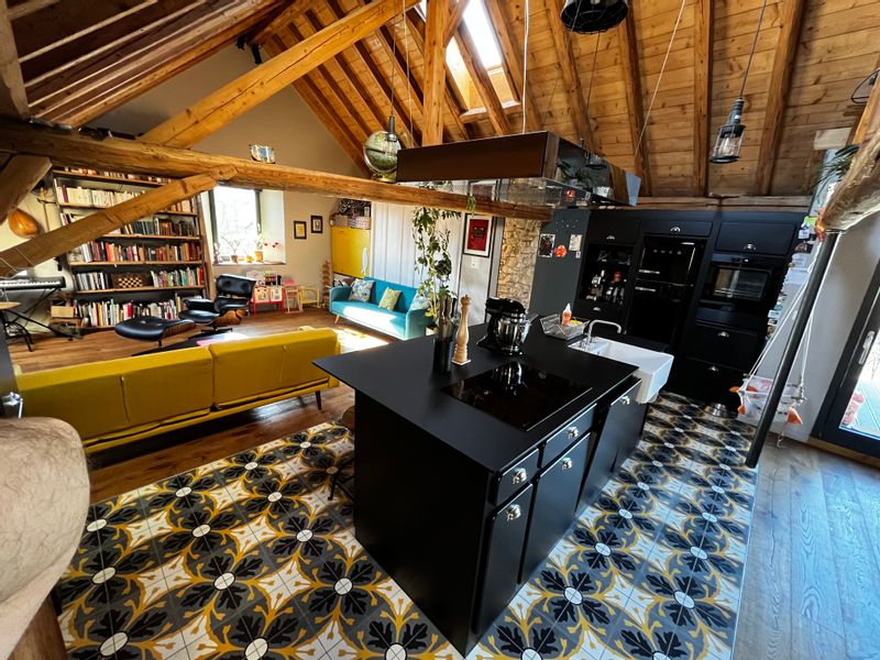 Maison ancienne rénovée avec élégance et matériaux naturels.