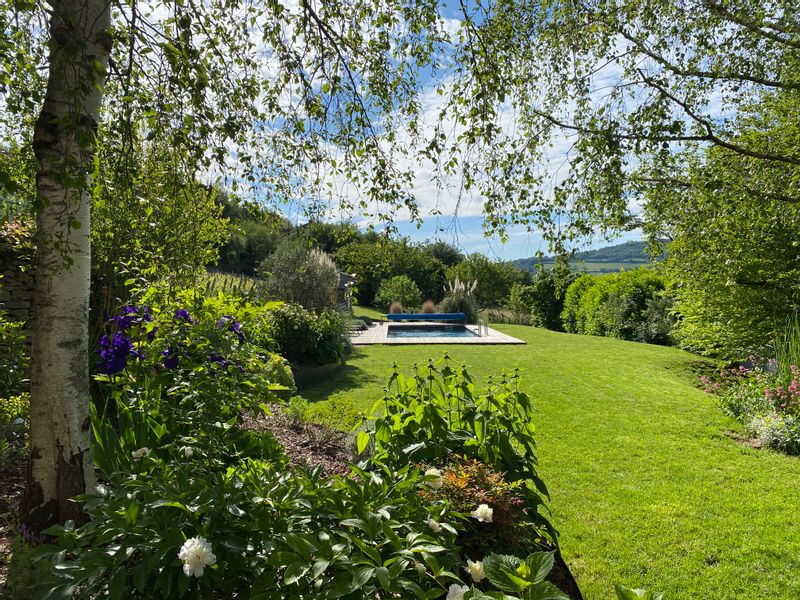 Maison en pierre avec piscine et vue sur les vignes en Bourgogne