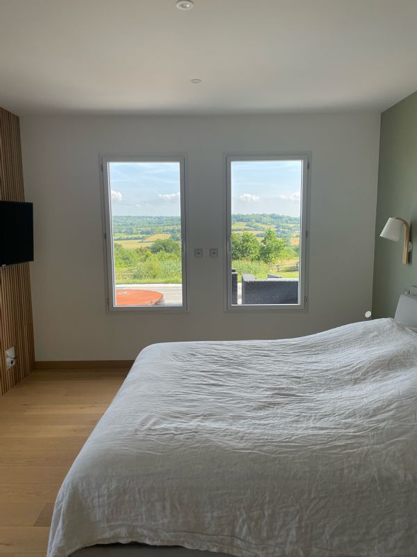 Maison moderne en bois avec piscine chauffée à 10 min de la mer et 2 min de Pont L’Eveque