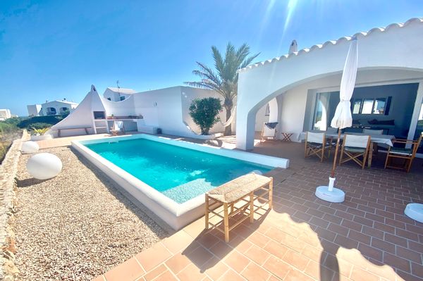 Vue mer, piscine, toit terrasse pour admirer les magnifiques coucher de soleil, barbecue, hamacs, chaises longues Minorquines.