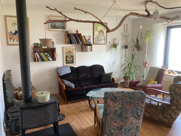 Grande maison éco-rénovée avec poêle à bois, hamac et bain nordique.