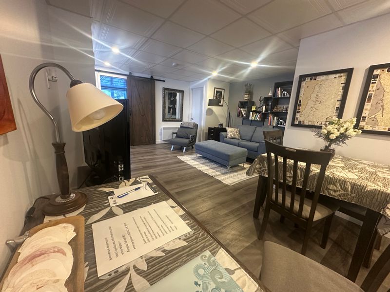 Nous l'appelons LogeMer style bord de mer c'est un sous-sol décoré avec goût, très bien éclair�