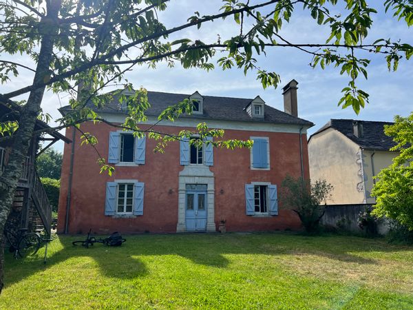 La maison rose face aux montagnes