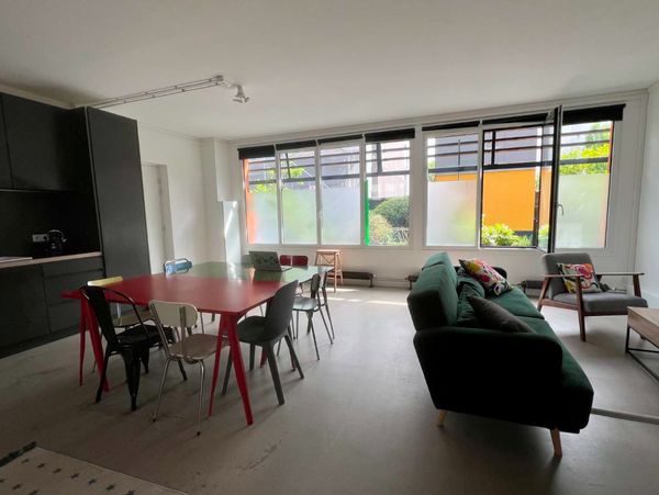 Loft avec grande pièce à vivre et une petite chambre.