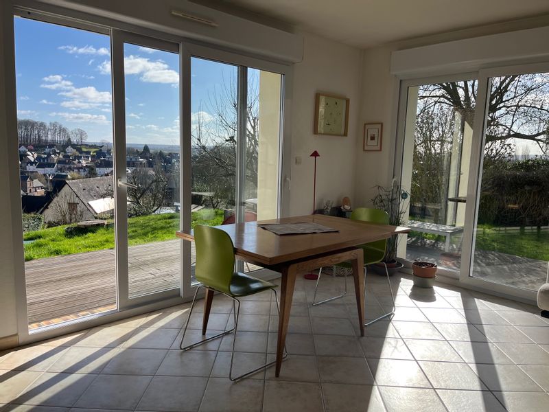 Chambre privée avec baie vitrée et terrasse donnant côté jardin avec vue sur la vallée de la Se