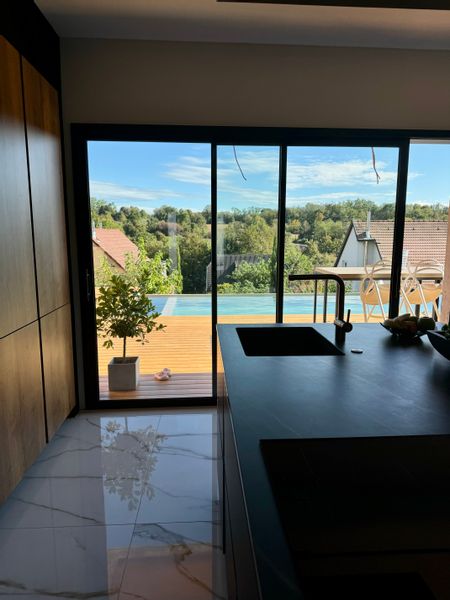 Villa dans cadre de verdure, avec grand open Space, vu forêt avec piscine à débordement.