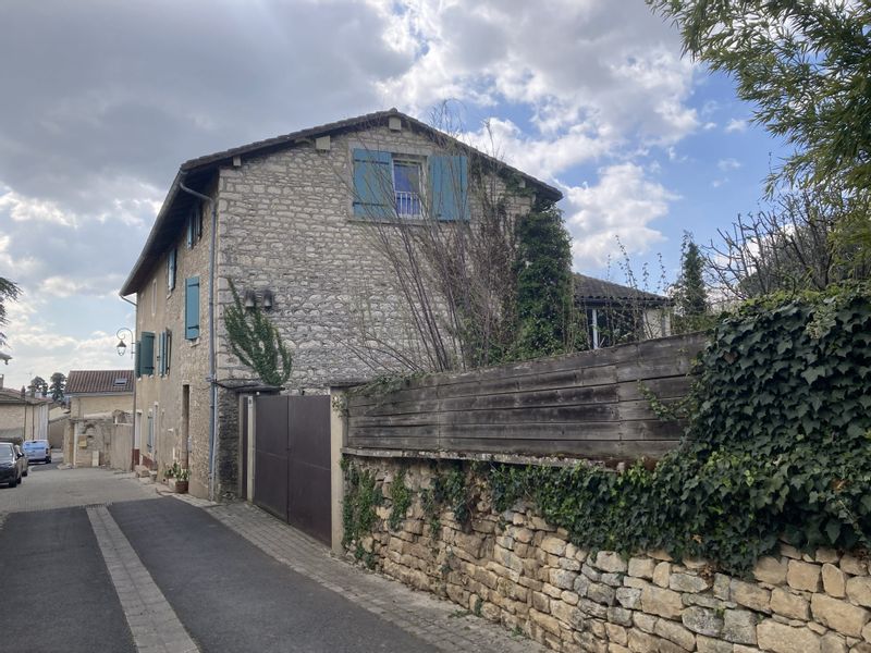 Grande maison en pierres blanches avec jardin dans un village du Beaujolais