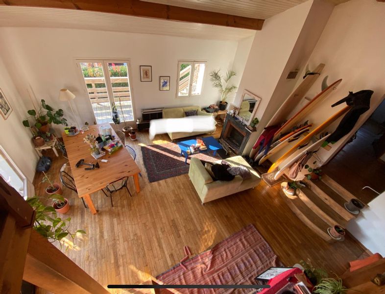 Chambre privée dans magnifique maison proche de la mer avec accès direct vers la terrasse en bois.