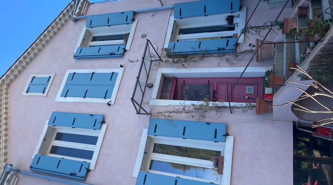 La maison rose aux volets bleus