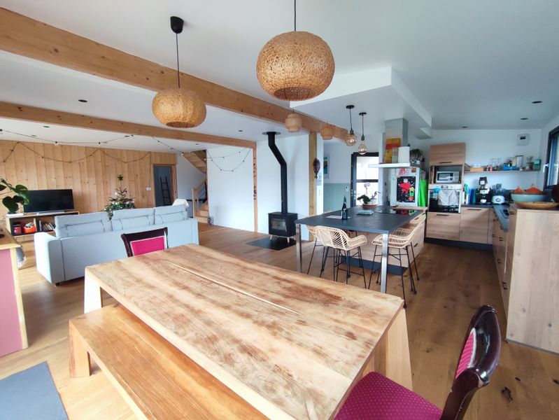 Maison récente en bois au bord de la rivière d'Etel