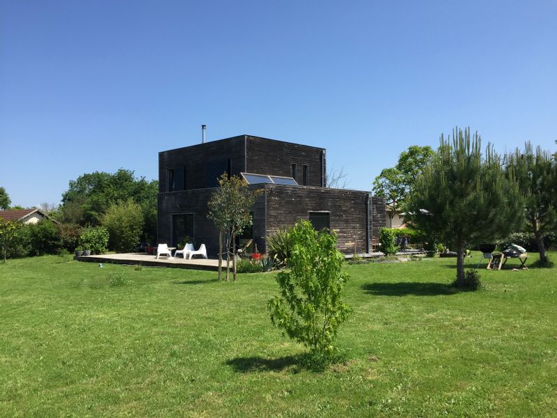 Maison contemporaine en bois avec grand jardin arboré