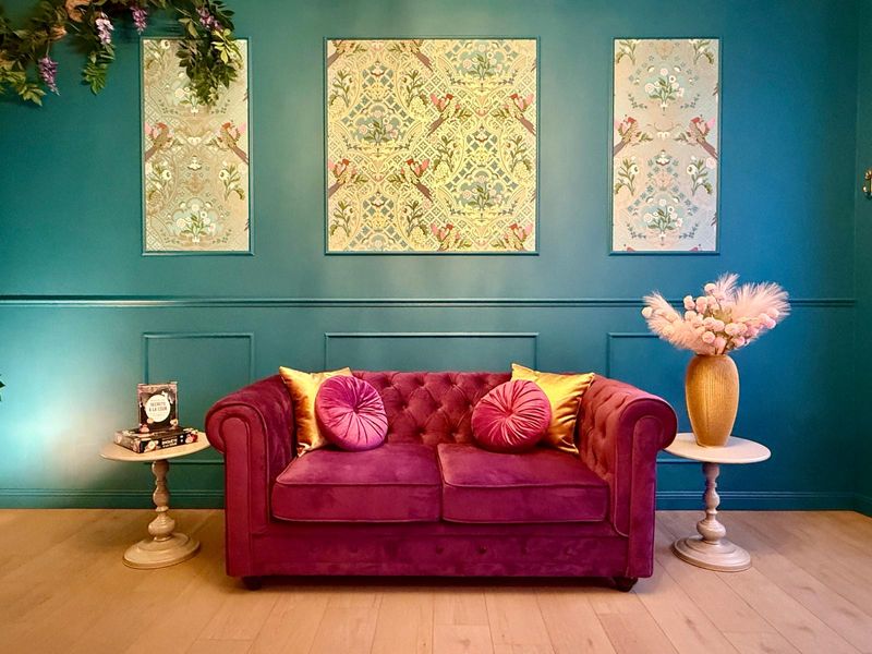 Nous vous proposons une suite pour deux, décorée sur le thème de Bridgerton (Regency) en Touraine