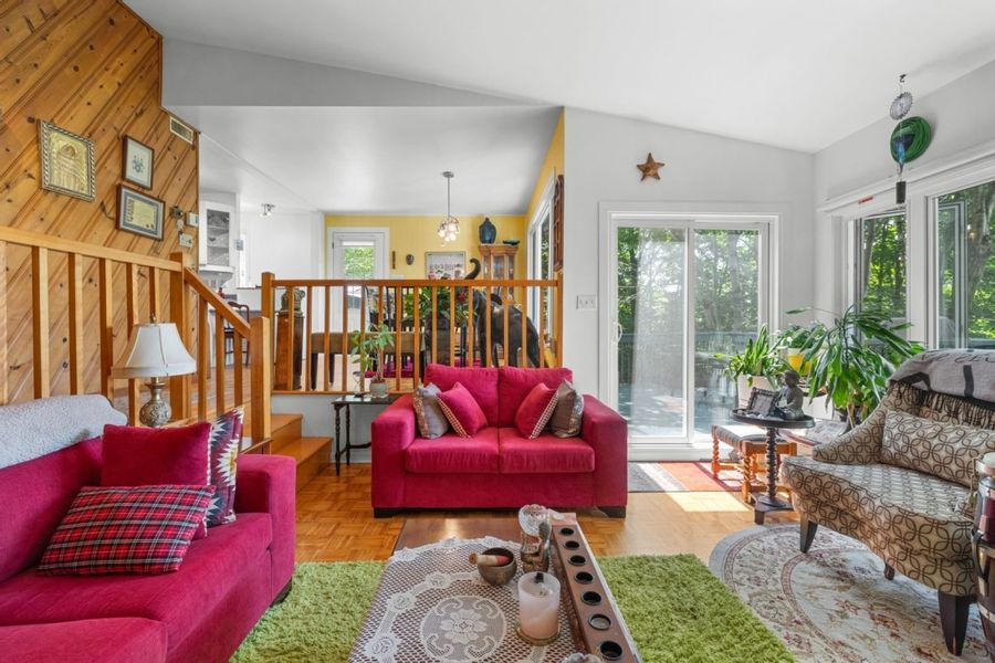 La maison de Valérie a une vue imprenable sur le lac St-Joseph. Couchers de Soleil, forêt, plage.