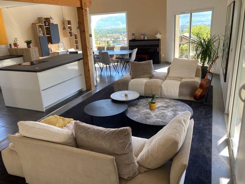Maison lumineuse avec vue sur montagnes, piscine et salle de bloc (escalade).
